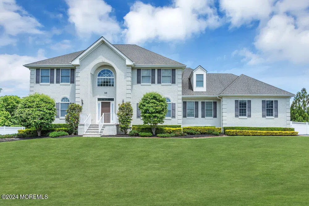 Located in prestigious Freehold Pointe, this meticulously maintained 4100sf Turnberry model has a 2 story grand foyer opening to a formal living room & dining room w/gleaming hardwood floors. The sunlit upgraded kitchen features Black Galaxy granite countertops, center island, walk in pantry & butlers pantry. Kitchen opens to a spacious Family room with gas fireplace & triple windows overlooking the backyard. The sweeping staircase leads upstairs to an expansive primary suite having a sitting room, double walk in closet, & oversized Bath with a Jacuzzi whirlpool. This level also features a Princess suite and Jack & Jill (3 addl BRs + 2 addl FBAs). The 1st floor boasts a bedroom and full bath perfect for a guest suite or multigenerational families. The full dry basement is waiting for your touches. The open backyard is fully fenced in with an oversized Trex deck perfect for relaxing or hosting. Add the close proximity to Routes 9, 18, 79 , 33 and 34 for all your shopping & transportation. you will want to be in and enjoy the summer.