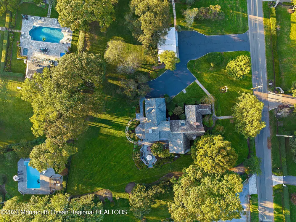 Experience unparalleled Luxury Living in Rumson. This magnificent residence boasts expansive living space on over 1.5 acres of pristine land, complete w/ a heated gunite pool. Upon entry, you'll be welcomed by an open floor plan featuring lofty ceilings & abundant windows that flood the home w/ natural light. The unique family room w/ fireplace, living room leading to a secluded office, dining area, entertaining bar space & gourmet kitchen seamlessly flow to the generous slate patio providing multiple outdoor seating options & overlooking the backyard oasis. The primary suite offers a sitting area, lavish bath, dual walk-in closets, & private balcony. Additional highlights include a great bonus room above the two car attached garage, a well thoughout mudroom, a wine cellar & generator.