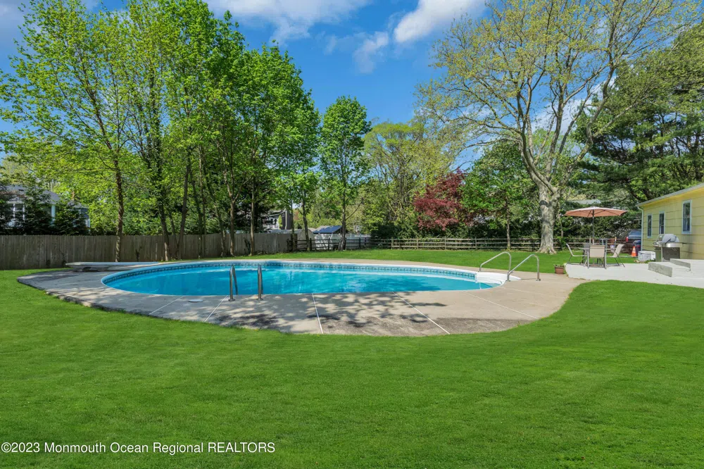 Set in the rolling hills of the Oak Hill section is this GORGEOUS single story home with modern finishes and the backyard, pool and patio you have been looking for! The open floor plan with a gorgeous white kitchen, remodeled in 2021 includes an island, stainless appliances and laminate flooring. The new flooring continues into the dining room and living room where you also have a wood burning fireplace and recessed lighting. The family room has added built-ins and both bathrooms were stylishly updated in 2022. The large basement is ready to finish. Washer/dryer working but in ''as is'' condition. Windows replaced except for garage and basement. PRIME location and easy access to Garden State Parkway for the commuter