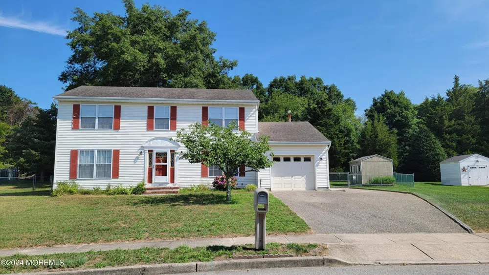 Tuckerton Estates offers a close-knit, quaint community with underground utilities, perfect for creating lasting memories for a growing family. This two-story Colonial-style home features a distinctive center hall with a spacious entry foyer. It includes 4 bedrooms, 2 and a half baths, and an attached one-car garage with direct entry. The eat-in kitchen boasts a sliding glass door that opens to a composite deck and a fenced backyard abutting trees for additional privacy. Updated kitchen cabinets in a light maple wood shaker style, granite countertops, and two pantry closets enhance the space. A formal dining room and living room branch off from the kitchen. The home is equipped with economical gas forced air heating, a tankless water heater, and central air conditioning. All bedrooms are