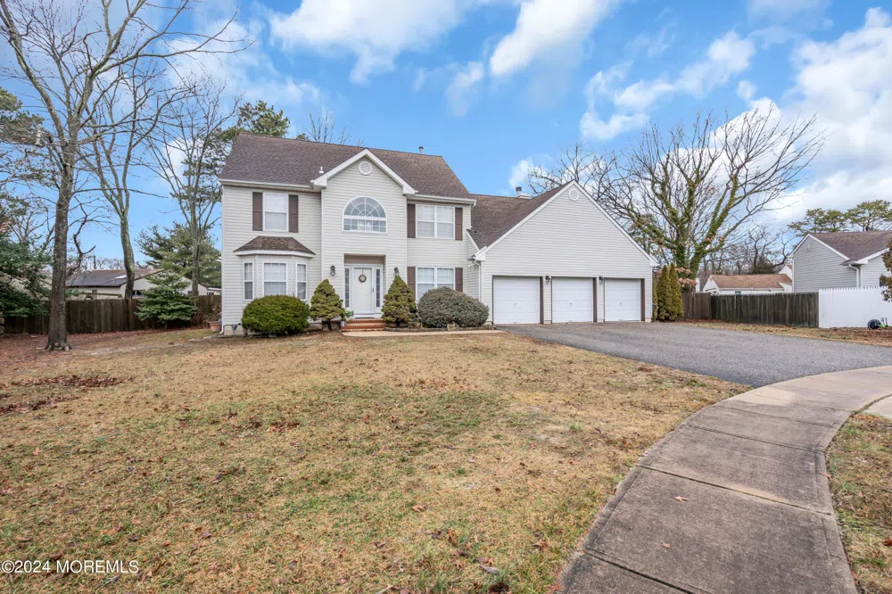 Welcome to this spacious colonial home on a cul-de-sac in the Dukes Estates/Adamston section of Brick. Close to the Metedeconk River & minutes from the beach, this four-bedroom, three-bathroom home sits on a 17,311 sq.ft. lot. The ground floor offers an office, family room, living room, dining room, a full bathroom, kitchen with two islands & access to the garage, laundry, & utilities. Upstairs, four bedrooms, a common bathroom, & a primary suite with vaulted ceilings, a full bathroom, & attic access. Externally, the home features vinyl siding, dual-pane vinyl windows, & sliding doors. Its location ensures proximity to shopping ,easy commuting & just a 6-minute drive to Mantoloking Public Beach.