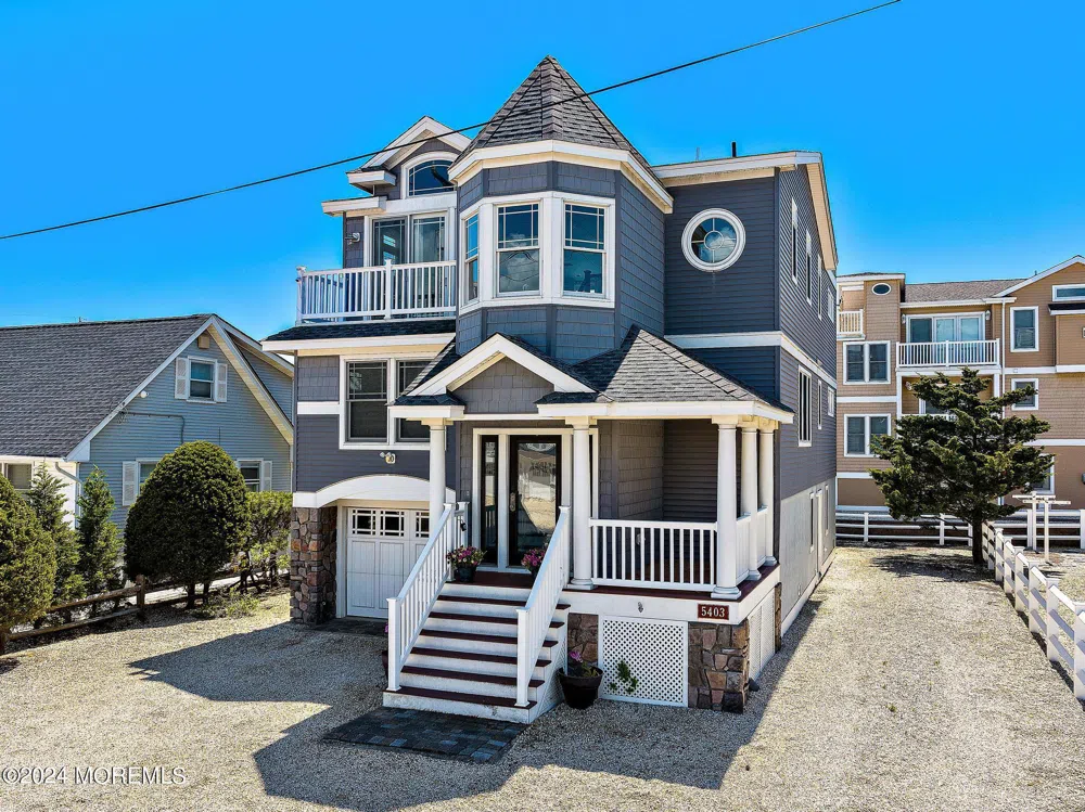 Welcome to coastal paradise in the heart of Harvey Cedars! Located just 4 houses away from the beach, this exquisite 4-bedroom, 3.5-bathroom residence offers the epitome of luxury living with the added charm of a wrap-around porch. Crafted by the renowned Thomas Keller and architect Michael Strunk, every detail exudes sophistication. Step inside the 3-story foyer and be captivated by the seamless flow of this open-concept masterpiece. Hardwood floors grace the interiors, leading you to the heart of the home—a gourmet kitchen adorned with stainless steel appliances, custom cabinetry, a tin backsplash, and granite countertops. The main floor also boasts a spacious living area with a fireplace, creating the perfect ambiance for cozy evenings. Vaulted ceilings, half circle windows and abundant natural light enhance the sense of space and airiness. Retreat to the large master suite with an ensuite bath, which opens to a private deck, offering a serene escape. On the first floor, discover a versatile family room with a wet bar, ideal for entertaining. Three additional bedrooms, including a junior suite, provide ample space for guests or family members. A well-appointed laundry room and an additional full bathroom complete this level. As you ascend to the rooftop deck, breathtaking ocean and bay views unfold, creating an unparalleled backdrop for relaxation or entertainment. Designed with modern living in mind, this residence was also built ready for an elevator, features an oversized garage and plenty of room for parking. Enjoy the convenience of being just moments away from Bergen Ave Beach, adding a touch of coastal convenience to this luxurious retreat. Experience coastal living at its finest, where impeccable design meets seaside serenity. Your dream home awaits in Harvey Cedarswhere elegance meets the ocean breeze. *Landscape and hardscape have been virtually enhanced.