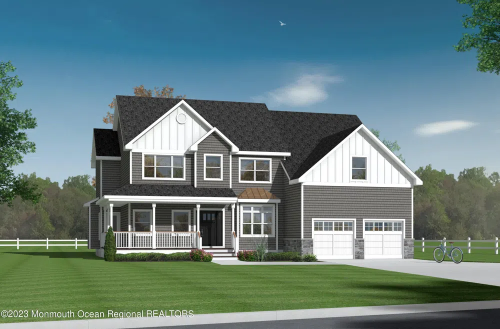 New construction on a 1/2 acre lot offering 5 bedrooms, 3 full baths, basement, and 2-car garage. Exterior includes covered front porch, composite rear deck, cedar impression siding, Andersen windows, Azek trim, board & batten gables, plus cultured stone on front/porch, standing seam roof accents. The open floor plan (kitchen/dining/family room) features 9 ft ceilings, oak hardwood flooring, decorative trim, and a gas fireplace. Additionally, there is a living room, full bath, study (6th bedroom option), and mud room w/pantry. The kitchen boasts premium cabinetry with Quartz countertops, tile backsplash, island, coffee bar w/beverage fridge, and Stainless-Steel appliances. Primary bedroom has large walk-in closet, private bath with dual sink vanity w/Quartz top, shower, and soaking tub. Conveniently located near marinas a restaurants along the Manasquan River, parks, farm markets, and the 1.6-mile scenic path around the Brick Reservoir.