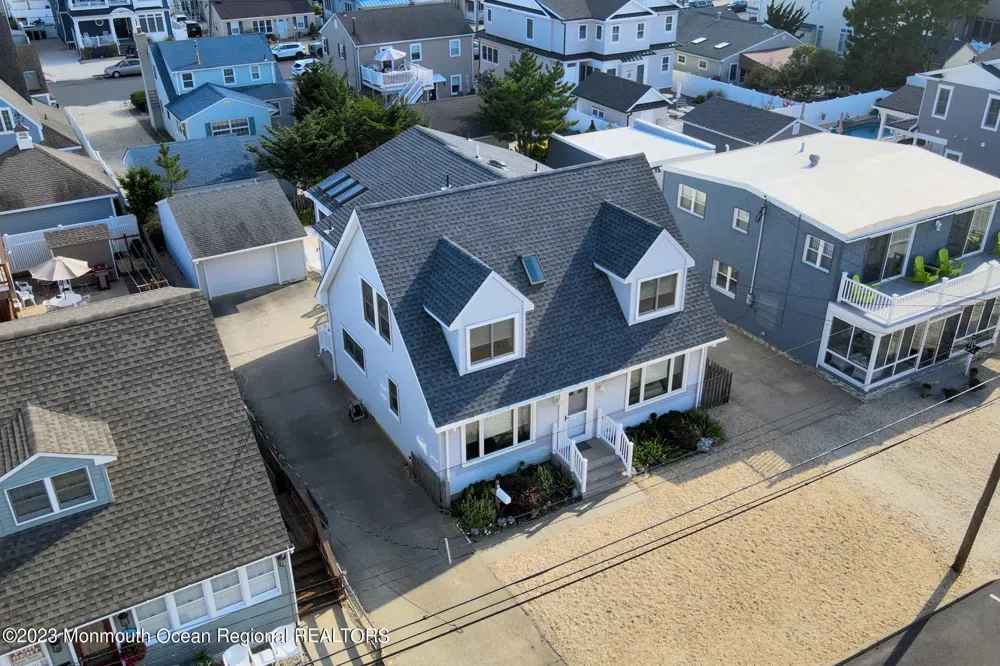 Immaculate and spacious, this house boasts room for all and is only 4 properties to the oceanfront. Living room, formal dining, huge kitchen and family room (currently being used as more dining area) plus first floor bedroom and bath on main level. Upstairs are an additional 4 bedrooms, sun room, two 1/2 baths with Jack and Jill tub and shower. Detached garage, outside shower and room for a pool all in the backyard,